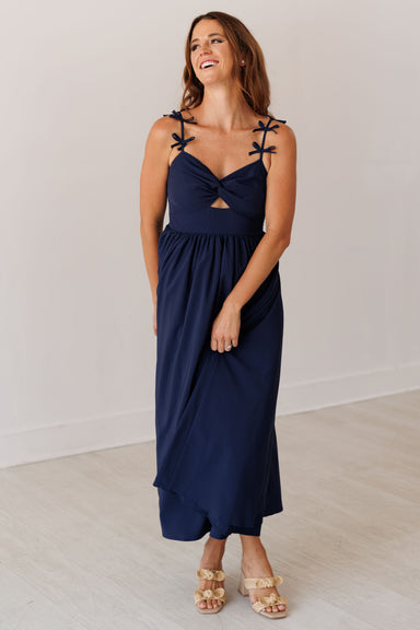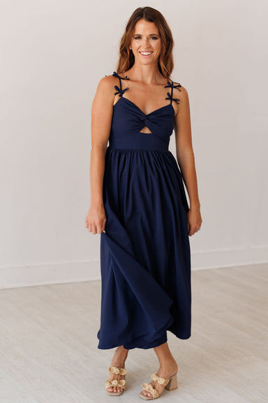 Twirl into elegance with the Chloe Dress in royal blue, featuring delicate floral stitching that adds a touch of whimsy to your wardrobe. The charm...