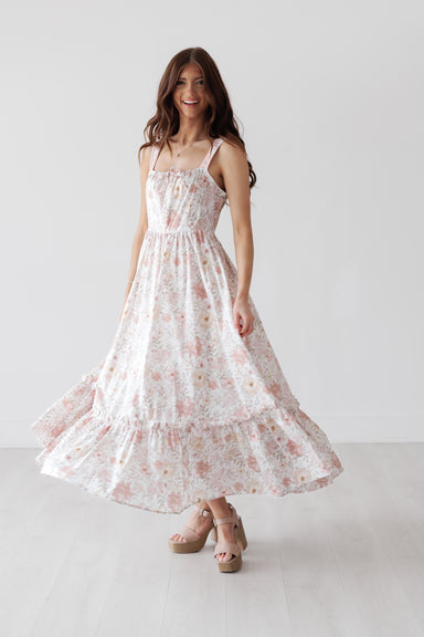 The Blakely Dress is the definition of soft, feminine charm. With its flattering smocked waist, delicate straps, and flowy skirt, it creates an ef...