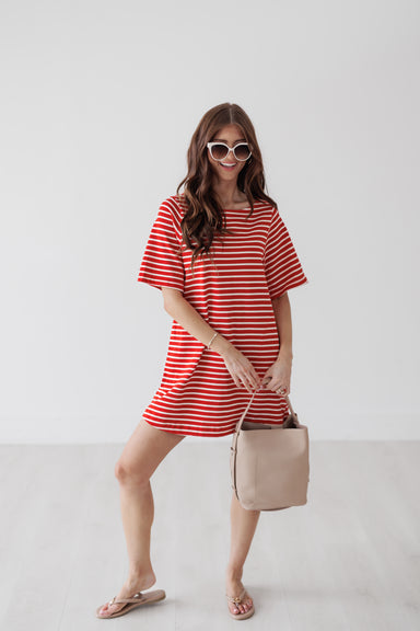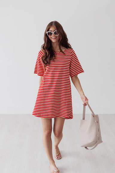 This striped dress offers an easy, relaxed silhouette with a classic boat neckline and short sleeves. The soft, lightweight fabric makes it a comf...