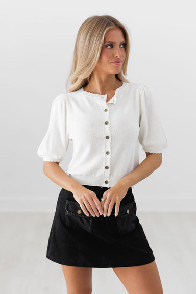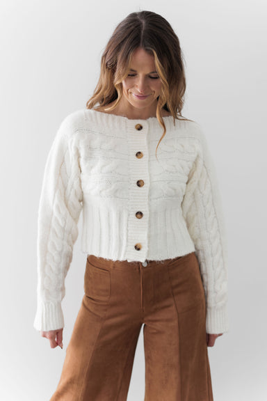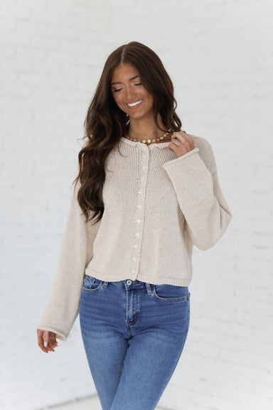 Introducing the new "Small Steps Cardigan" in ivory! We love the elevated details that this basic sweater has to offer! The simplicity of the numbe...