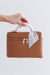 Elevate your style with the "Diana Bag" in tan! Perfectly versatile and easy for adding a touch of flair to your everyday look! It features a simple base with a wrap around gold zipper and a scarf detail on the handle!