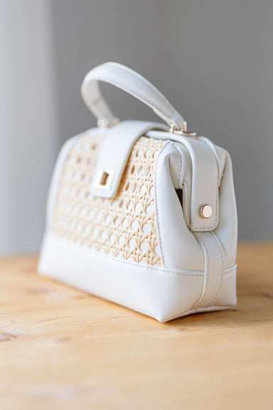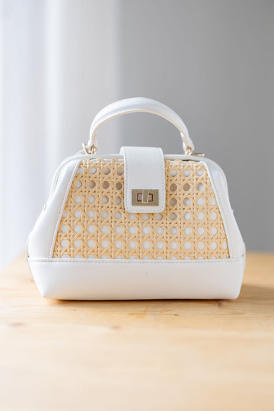 Add a touch of charm to your looks with the "Maya Crossbody" in white! Featuring a neutral, woven basket inspired bottom with white handles at the ...