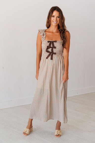 Timeless elegance meets effortless charm in the "Ainsley Dress!" Designed to flatter with a smocked bodice, this stunning rust and natural dress o...
