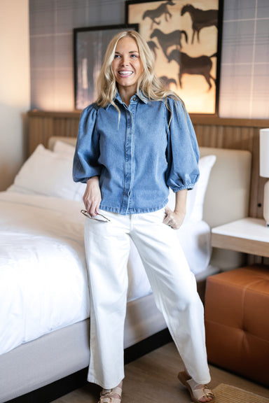 The All In Stride Denim Top is the sartorial equivalent of "working hard and playing harder," featuring voluminous sleeves that bring all ...