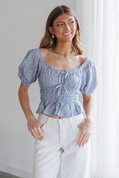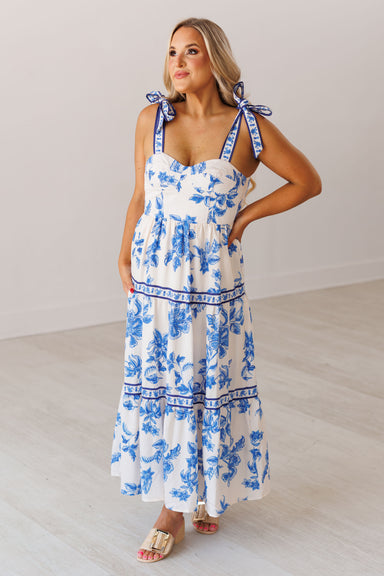 Embrace timeless elegance with the "Allison Dress," adorned with delicate blue florals for a fresh, feminine touch. Designed with a flattering squa...