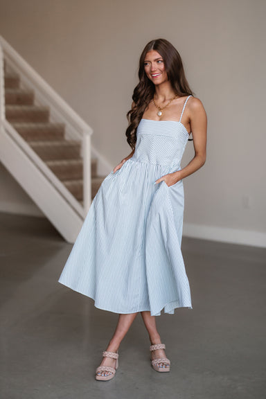 The Bethany Dress dress is a chic, modern take on a coastal classic, featuring a flattering fit-and-flare silhouette. It is designed with dainty sp...