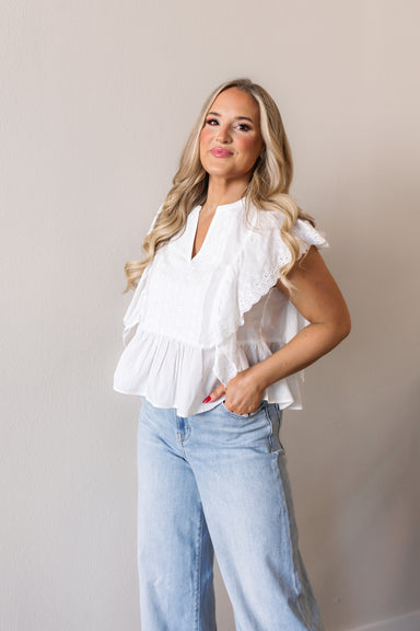 The Meet Me There Top is a romantic and airy addition to your warm-weather collection, featuring delicate eyelet embroidery and a flattering V-neck...