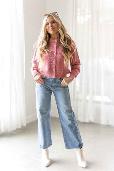 Wrap yourself in the cozy charm of the Christine Cable Knit Cardigan, a warm rose-hued beauty that's impossibly soft and light against your skin. T...