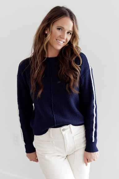 Cozy up in the "Teddy Bear Sweater" in navy! This sweater is such a sweet and charming way to add a touch of autumn charm to your wardrobe! Boastin...