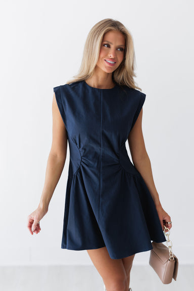 Prepare to charm in the "Mallory Mini Dress" in navy! Elevated and perfect for fall game days, this mini dress is a true head turner! It boasts the...