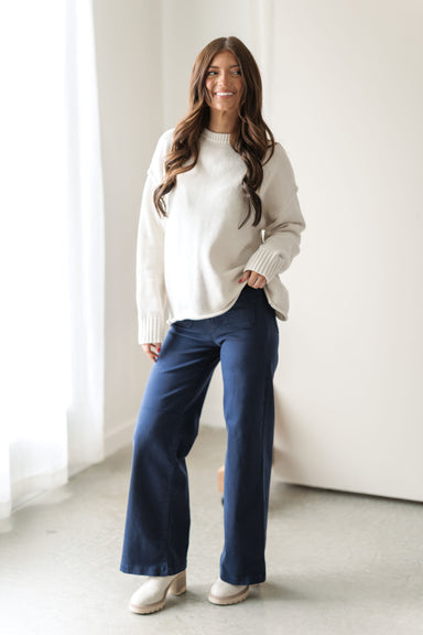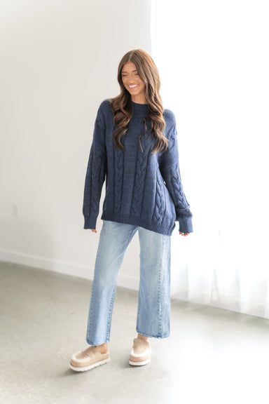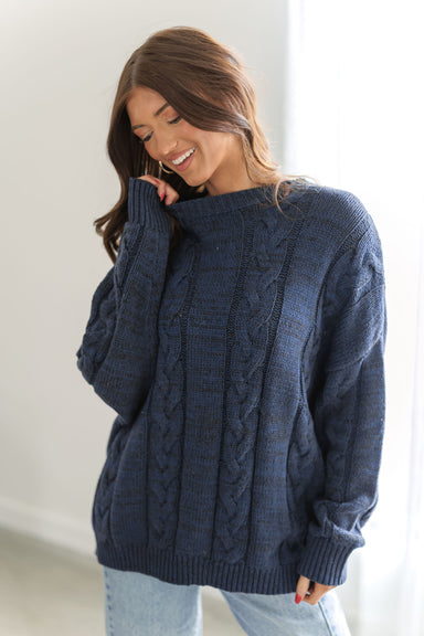 Slip into ultimate comfort with the Secret Escape Sweater, a generously oversized cable knit in rich dark navy that's surprisingly light and wonder...