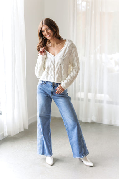 Wrap yourself in pure coziness with this ultra-soft ivory sweater that's as charming as it is comfortable. Delicate detailing at the neck and sleev...