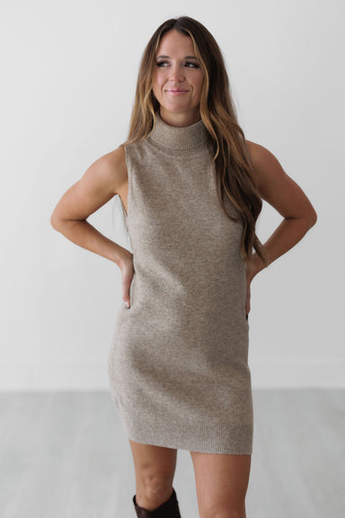 Prepare to charm in the "Audrey Dress!" You can never go wrong with a chic and charming sweater dress like this one! Featuring a neutral brown knit...