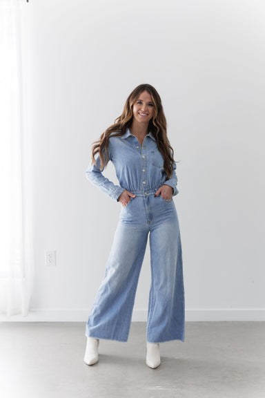 Embrace effortless style in the "Ride The Wave Jumpsuit!" Elevated and retro, this jumpsuit is perfect for anyone looking to make a statement! It f...