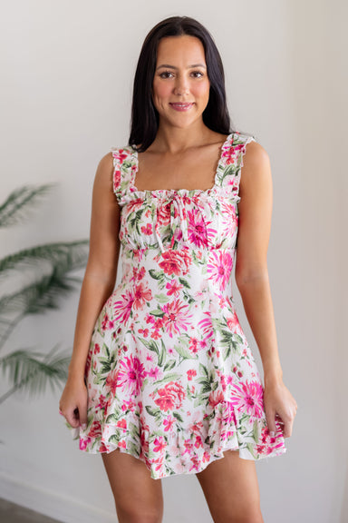 Twirl around in the "Cameron Dress!" We love the effortlessly chic fall details that this dress has to offer! It features a neutral base with daint...