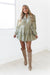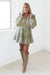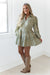 This sage mini dress is your new go-to for looking effortlessly styled with zero effort required. The lightweight fabric, button-front detail, and subtle ruffle tiers create a breezy silhouette that feels flirty without trying too hard. A drawstring waist pulls everything together for a flattering, cinched shape that still moves with you. Pair it with boots or heels—either way, it’s giving soft elegance with a side of cool-girl charm.