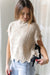 This soft tan sweater vest brings effortless charm with its playful design, scalloped trim and cheeky black side ties that cinch for a flirty, customizable fit. Perfect for layering over your favorite basics, it's the cozy essential that adds personality to any outfit. Dress it up or down—this neutral beauty works as hard as you do.