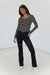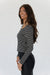 This elevated long sleeve top features refined horizontal stripes in black & beige, crafted from soft fabric that drapes beautifully while maintaining a modest, fitted silhouette. Perfect for layering or wearing solo, it's a versatile staple that effortlessly transitions from casual to polished occasions.