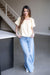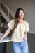 The Light Layers Top is the embodiment of breezy summer style, featuring a soft, textured fabric and a classic round neckline. It is designed with short sleeves that boast a delicate fringe detail at the hem, adding a touch of bohemian flair to a simple silhouette.