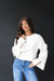 This cream knit sweater is all about the details. The soft, cozy fabric keeps things classic, while the tie accents along the sleeves add the sweetest feminine touch. With its relaxed fit and slight bell sleeves, it drapes beautifully and effortlessly elevates any casual outfit. Pair it with denim, skirts, or trousers when you want to look chic with just a hint of playful charm.