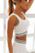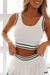 Be ready for the courts in the "Sea Mist Top!" This white athletic top is the perfect way to add some flair to your athleisure wardrobe! It features a cropped length with textured white fabric and contrast detailing throughout. Pair with shorts or with the matching skirt