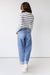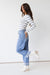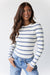 Embrace effortless coastal elegance with this fitted ivory bodysuit, featuring timeless blue stripes and thoughtfully designed long sleeves for modest coverage. The tailored silhouette offers a polished foundation piece that transitions seamlessly from casual days to any occasion.