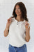 This structured off-white sweater vest features a charming flirty collar and refined button details at the neckline, delivering polished layering versatility. Perfect for building stylish outfits, its tailored construction ensures a flattering fit that transitions seamlessly from casual to elevated occasions.