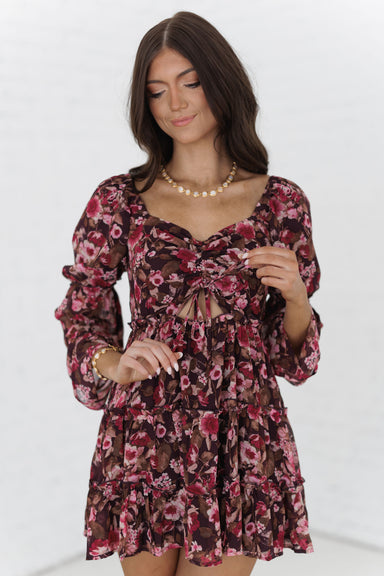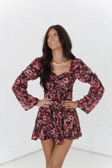 Meet the new "Anika Mini Dress!" Chic, feminine, and flirty are all words we would use to describe this mini dress! Boasting a pink and brown flora...