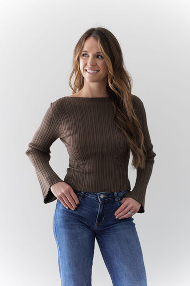 Enjoy neutral staples like the "Slow Fade Top" in chocolate! Featuring a ribbed fabric that comfortably hugs your body, a flattering boat neckline,...