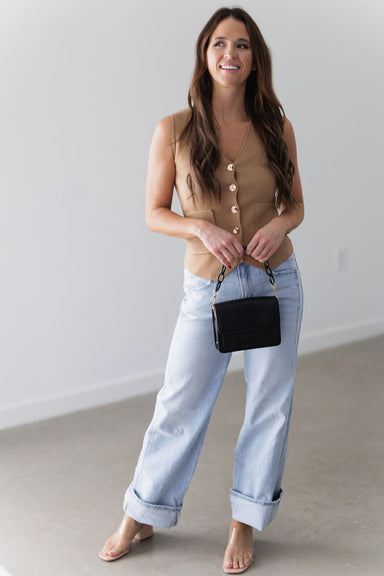 This cream ribbed tank is the definition of effortless layering. The soft knit and relaxed V-neck make it cozy enough for colder days, yet polished...