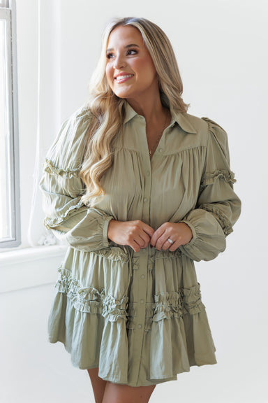 This sage mini dress is your new go-to for looking effortlessly styled with zero effort required. The lightweight fabric, button-front detail, and ...