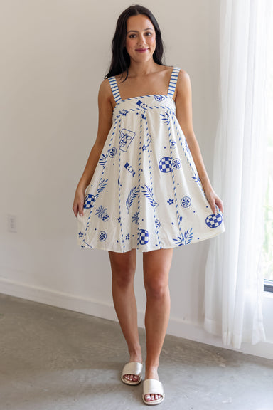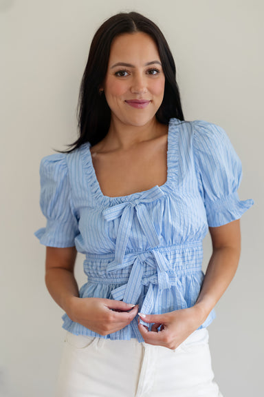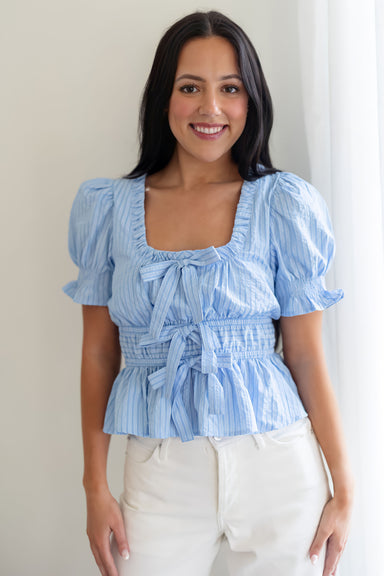 The Rise And Move Top is the ultimate "I’m on vacation" mindset in shirt form, featuring classic horizontal white stripes against a deep navy backd...