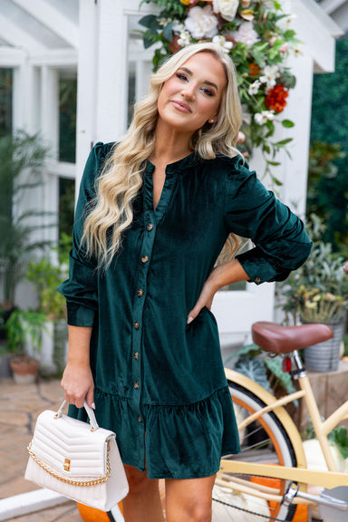 Meet the new "Miranda Mini Dress!" A chic way to add a touch of flair to your everyday, this dress has so much to offer! Featuring a green base, pu...