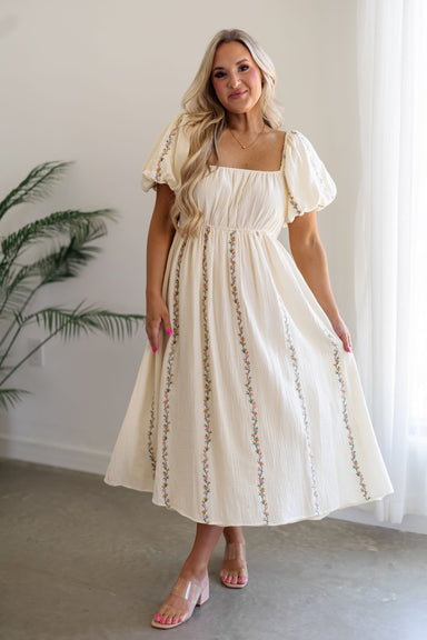 Feel your best in the "Willa Dress!" Feminine and timeless, this cream ensemble is perfect for making a statement! Featuring short puffed sleeves, ...