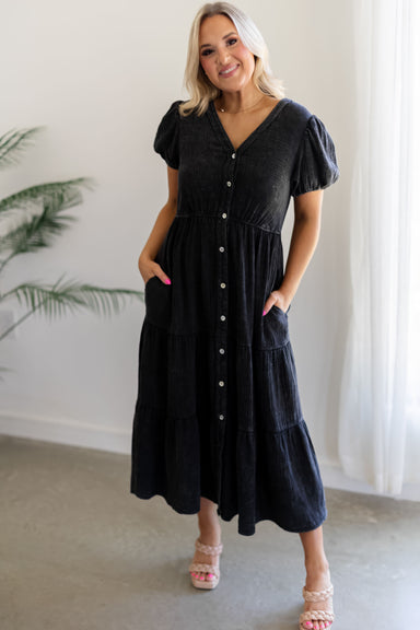 Meet the new "Dana Dress!" Effortlessly feminine and chic, this midi dress is perfect for making an elevated statement! Boasting a v neckline and o...