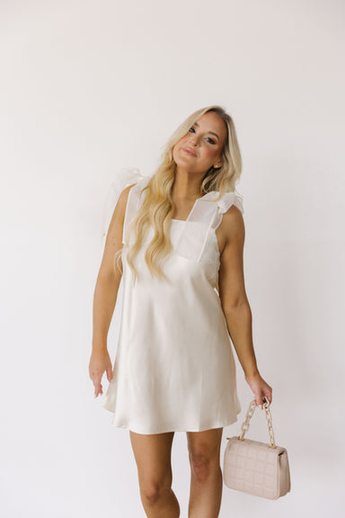 Meet the new "Loretta Dress!" This soft neutral dress features a V-neckline with elastic lining and adjustable spaghetti straps for a relaxed, fla...