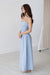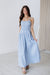 The Amy Dress is your summer wardrobe with this ethereal maxi dress, designed for effortless elegance and comfort. Rendered in a soft cornflower blue, the dress features a delicate textured seersucker-style fabric that adds subtle visual interest. The silhouette is defined by a comfortable smocked bodice and thin spaghetti straps, leading into a voluminous tiered skirt that flows beautifully with every step.