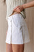 This Create What's Next mini skirt is the perfect blend of structured tailoring and casual summer ease. Rendered in a bright, clean white denim, it features a unique asymmetrical wrap-style front secured by a vertical row of polished silver buttons. The high-waisted silhouette is complemented by a classic coin pocket detail and a streamlined fit that hits at the mid-thigh.