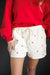 Wear your heart on your... hemline with these adorable cream-colored lounge shorts featuring a whimsical red heart print. The thick, elasticized waistband and adjustable drawstring ensure a perfect fit for every body, while the soft fabric makes them ideal for Valentine's Day marathons or just a Tuesday night on the couch. They’re the perfect way to add a little love to your lounge rotation—no Cupid required.