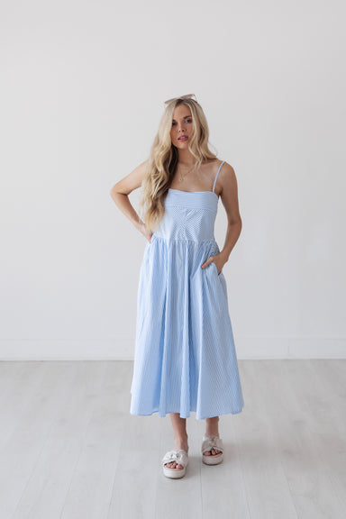 The Blakely Dress is the definition of soft, feminine charm. With its flattering smocked waist, delicate straps, and flowy skirt, it creates an ef...