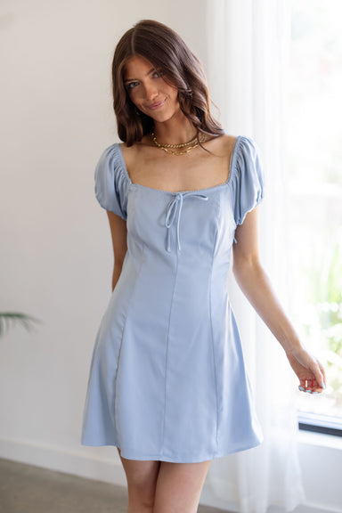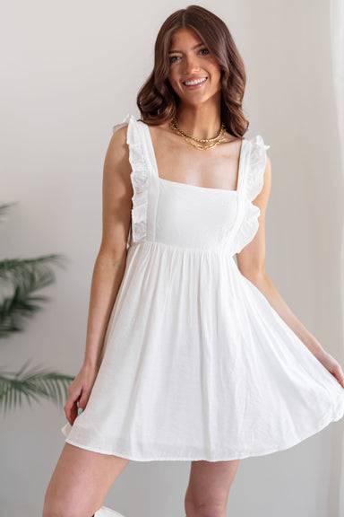 Meet the new "Toni Mini Dress!" Feminine, playful, and charming, this dress has all the essentials! Boasting a square neckline with lace trim linin...