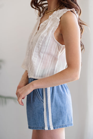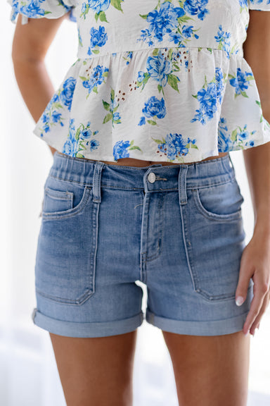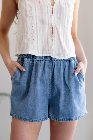 Comfort meets style with the "Terry Elastic Waist Mom Shorts!" These denim shorts are the perfect addition to your summer rotation because of their...