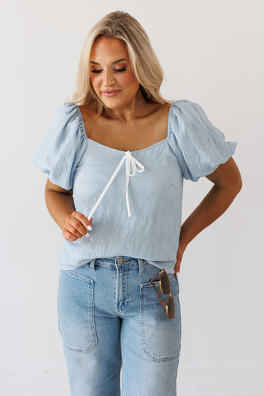 Prepare to charm in the "Blue Skies Top!" Chic and feminine, this top is great for your next summertime adventure. Boasting a square neck and backl...