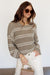 Classic with an autumn touch, the "Hazy Morning Sweater" features muted double stripe detailing for a timeless look. The soft knit fabric offers all-day comfort while keeping the silhouette polished and versatile. Long sleeves make it an easy layering piece for cooler days. Its casual yet chic design pairs effortlessly with jeans or skirts! A wardrobe essential that blends everyday ease with a touch of retro charm!