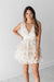 Deck the halls in the "Carson Mini Dress!" Cheerful and feminine, this mini dress is perfect for wearing to a holiday party or winter formal! Boasting a light ivory color with sheer overlay, along with 3D florals on the fabric. The elastic waistline with belt is effortlessly feminine and flattering!