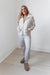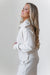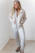 Elevate your cozy game with this crisp, cream-colored jacket that effortlessly blends sporty style with sophisticated flair. Crafted from a smooth, soft fabric, this jacket features a full front zip and a chic, standing collar that perfectly frames your face. The subtle seam detailing adds structure, making you look polished enough for a meeting, even if you just rolled off the couch. It's the ultimate layer for those days when you need comfort, but also want to look like you have your life completely together. Pirs well with matching " Wrapped in Warmth" joggers