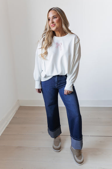 Ready to add a dash of sweetness to your everyday lounge look? This crisp white, oversized sweatshirt is your comfortable canvas, featuring a perfe...