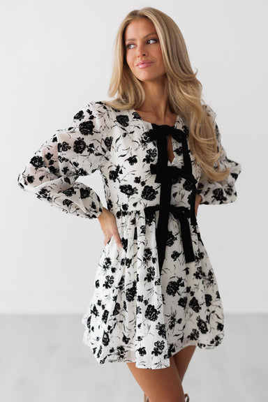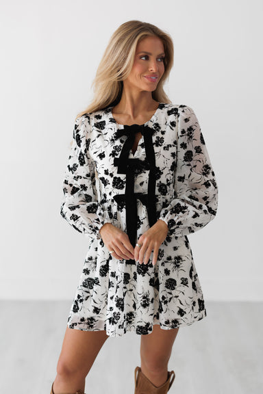 Twirl around in the "Khloe Dress!" You can never go wrong with a festive and seasonal dress like this one! Adorned with stunning black florals on a...