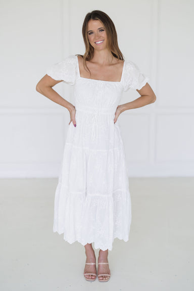 Stay feminine in the "Krista Dress!" We can't get enough of the chic and elegant details that this dress has to offer! Complete with an all white b...