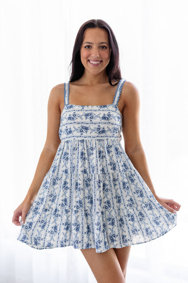 Meet the new “Layla Mini Dress” in cream and midnight blue! This charming floral print mini dress combines feminine elegance with a playful silhoue...